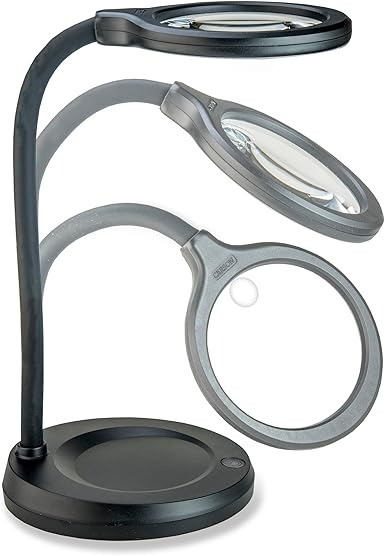 - Hands-free desktop magnifier with built-in lamp