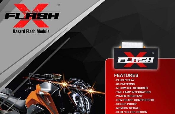 - Flash X is a cool hazard flash module for your motorcycle which is a plug and play device that allows you to choose different combination of blink patterns on your motorcycle.