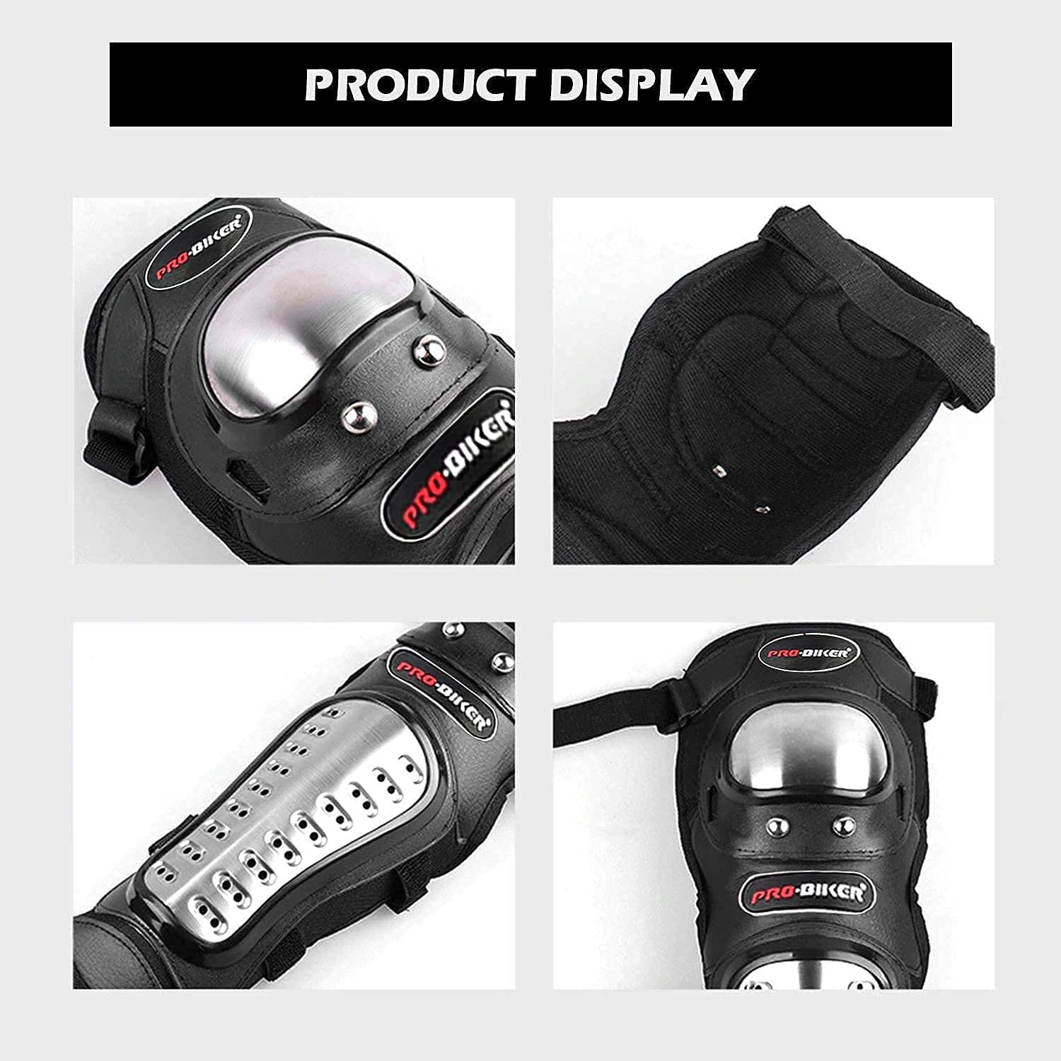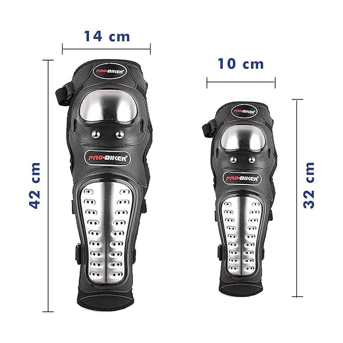 Probiker Racing Youth Sport Chrome Knee/Elbow Guards. The entry-level knee guard offers complete plastic knee and shin coverage, traditional, easy-to-use elastic fitting straps and a comfortable soft bio foam chassis. Motorcycle Riding Knee High impact resistant plastic shell. High density foam padding for superior quality and comfort. Adjustable elastic strap with Velcro for secure fit. Size - standard (for adults); color-black