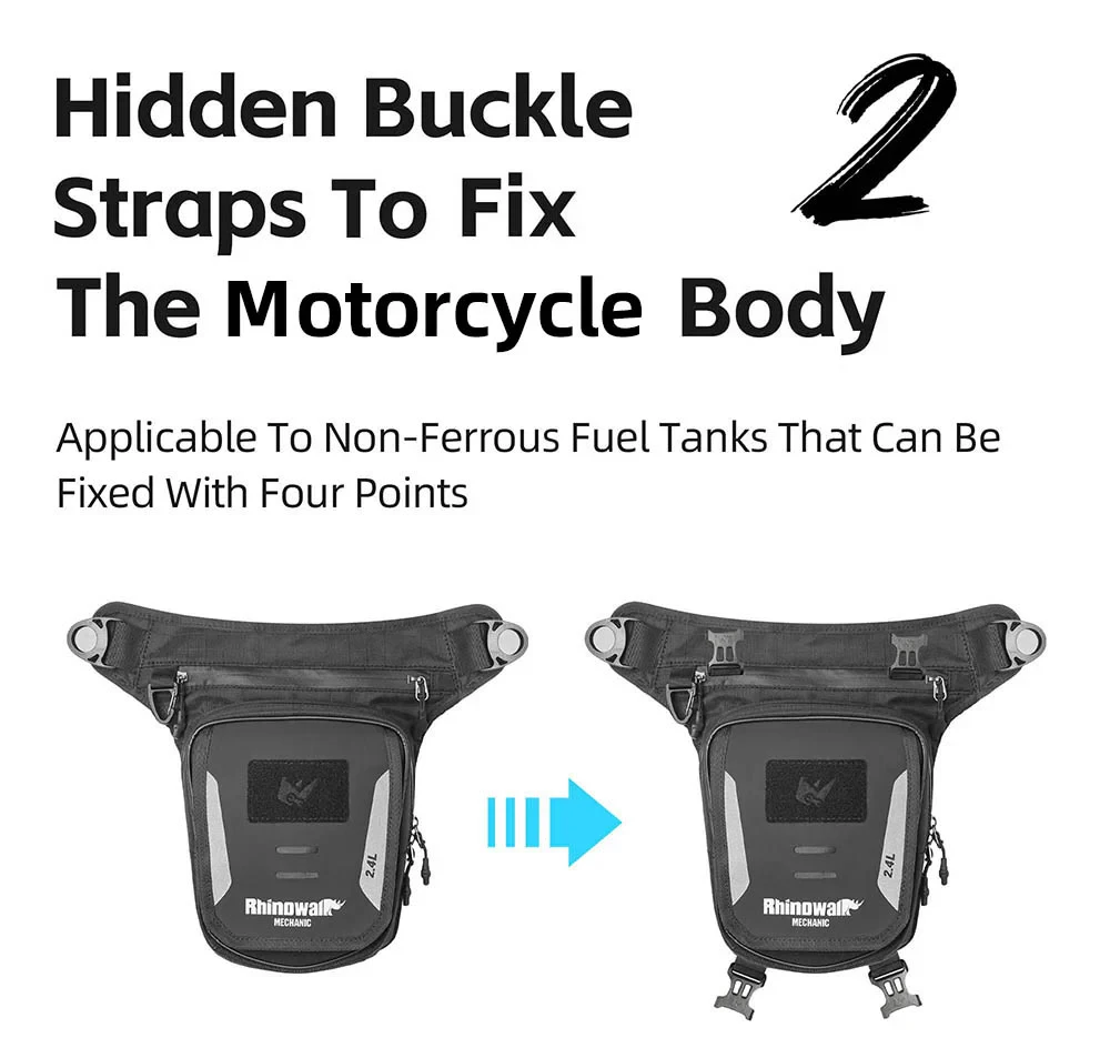 - Multifunctional bag: Equipped with many detachable and adjustable straps ,it can be used as motorcycle tank bag (applicable to tanks that can be fixed with four points),leg bag,chest bag,cross-body bag.