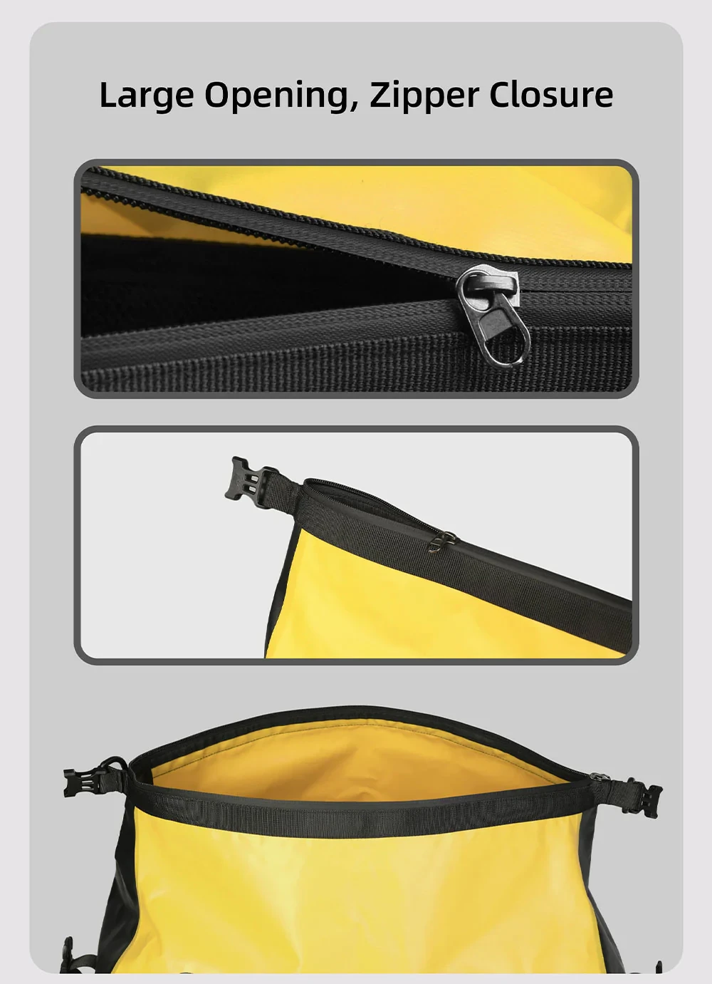 - 65L Capacity: Up to 65L capacity, it can easily hold clothes, wallets, air pumps, shoes and other items. Can be combined with a bicycle or motorcycle side pannier bag for extra space.