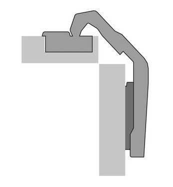 - Concealed hinge system for folding doors in corner cabinets (bi-fold configuration).