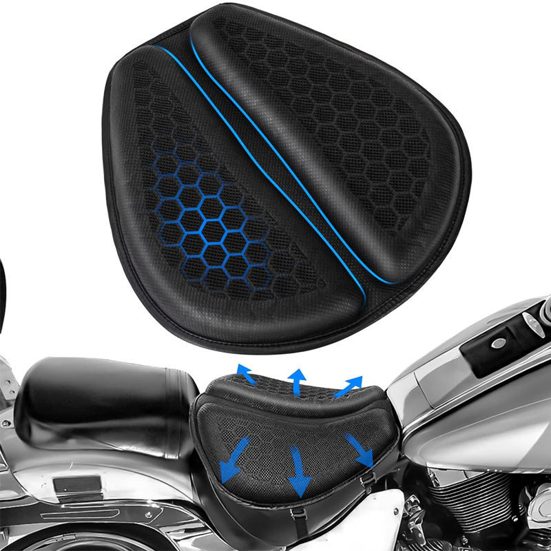 This item is a 3D honeycomb motorcycle seat cushion designed to enhance riding comfort.