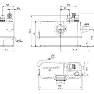 The Sololift2 WC-1 is intended to pump wastewater from a toilet containing toilet paper and faeces and is equipped with an additional connection on the lid, such as a washbasin.
