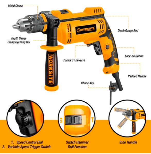 - Drill function is ideal for drilling on wood, masonry, solid steel and other similar material