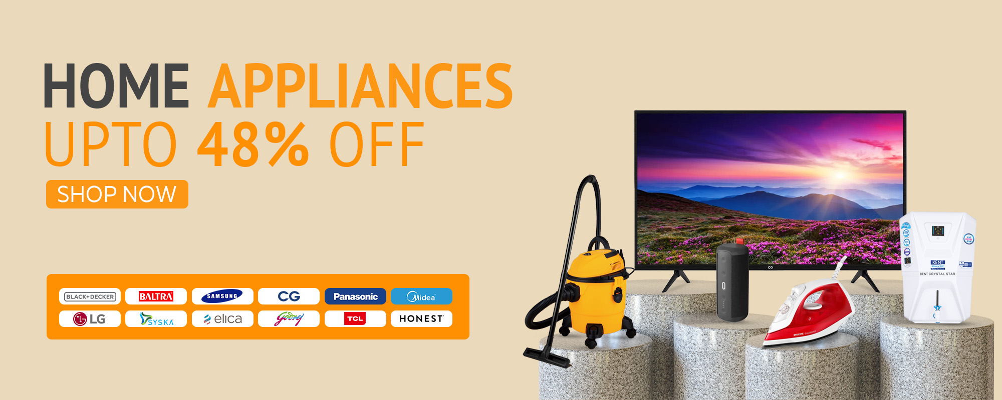Home appliances – Black+ decker, Goorej, Midea, CG, Pigeon, Elica, beko, TCL, LG, KENT, sensei, Baltra,