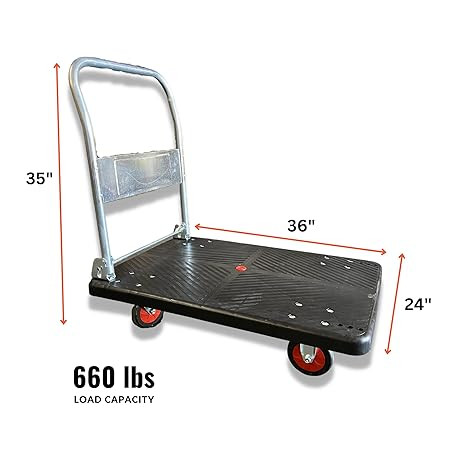 - 660 LBS LOAD CAPACITY - Platform truck is heavy duty! It has 300kg weight capacity which helps you carry heavy boxes, furniture and even home appliances like fridge or washing machine.