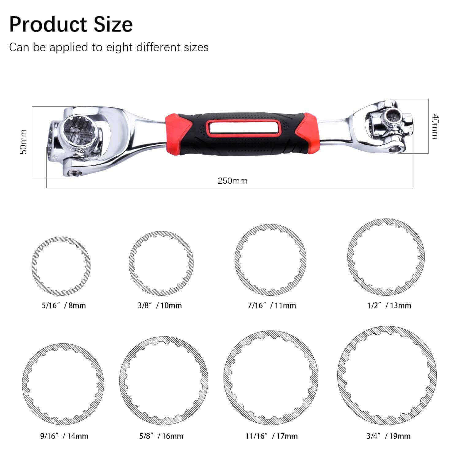- Size: 8, 10, 11, 13, 14, 16, 17, 19, 5/16, 3/8, 7/16, 1/2, 9/16, 5/8, 11/16, 3/4