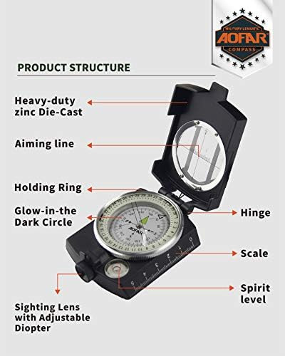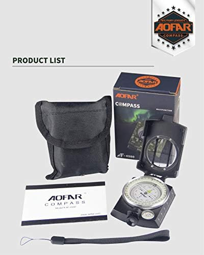 AOFAR Military Black Compass Lensatic Sighting Navigation with Map Measurer Distance Calculator AF-4580