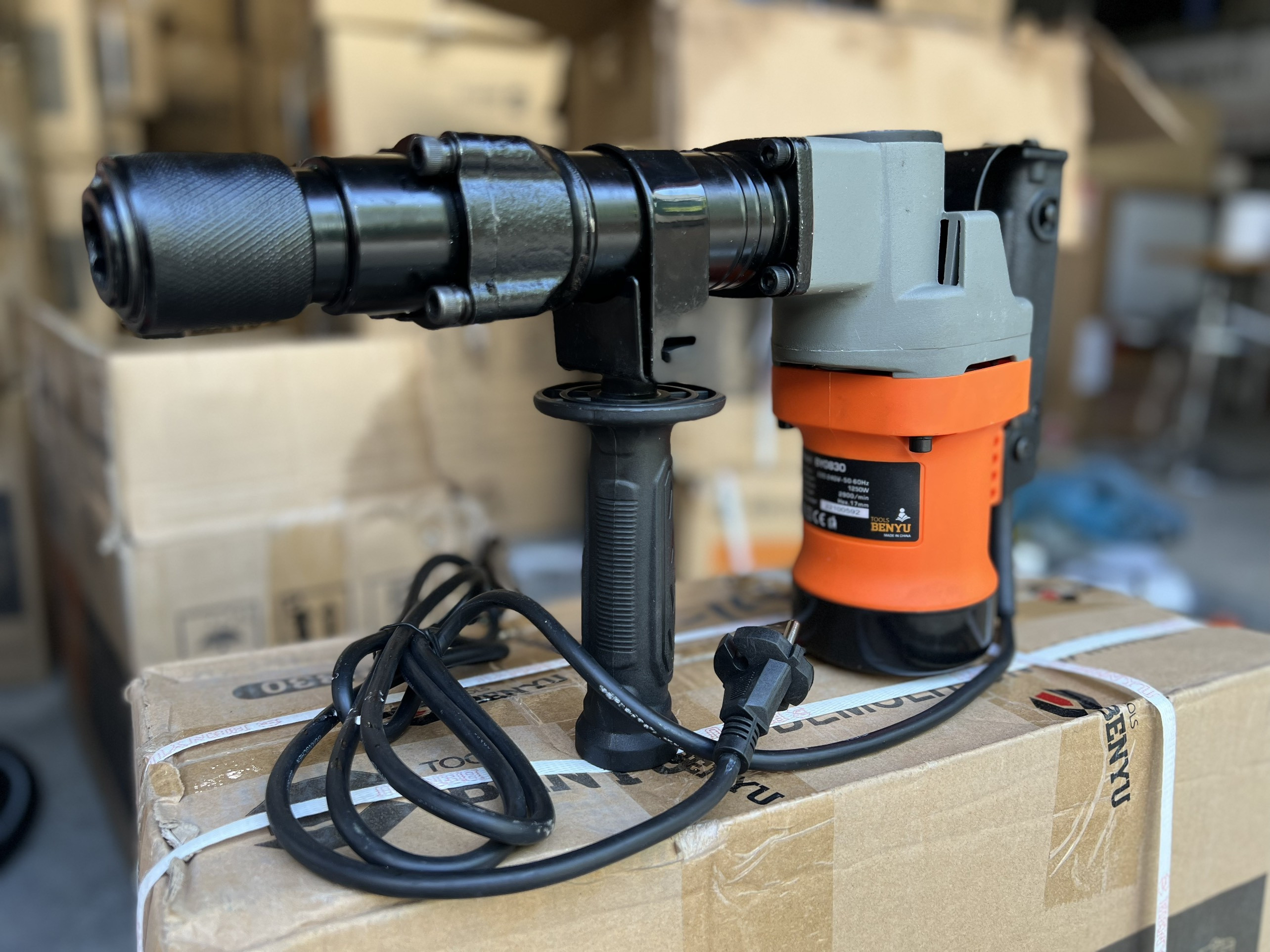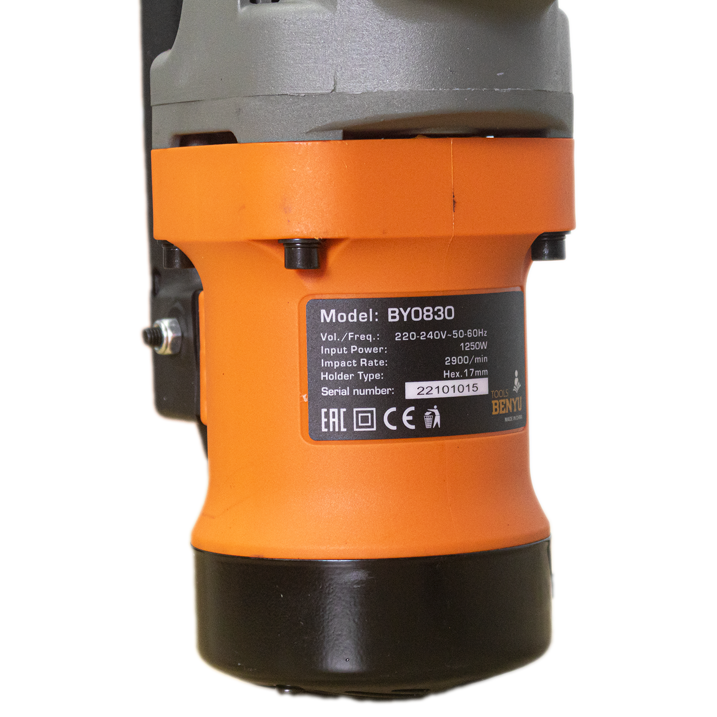 - Benyu BY0816 uses a 17mm chuck to easily remove and install the chisel. Equipped with a carrying case, convenient when moving a lot, avoiding impact and damage to the machine.