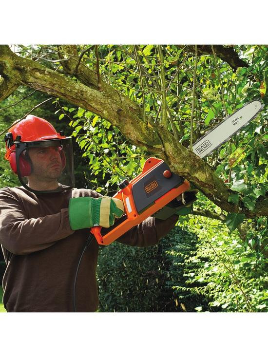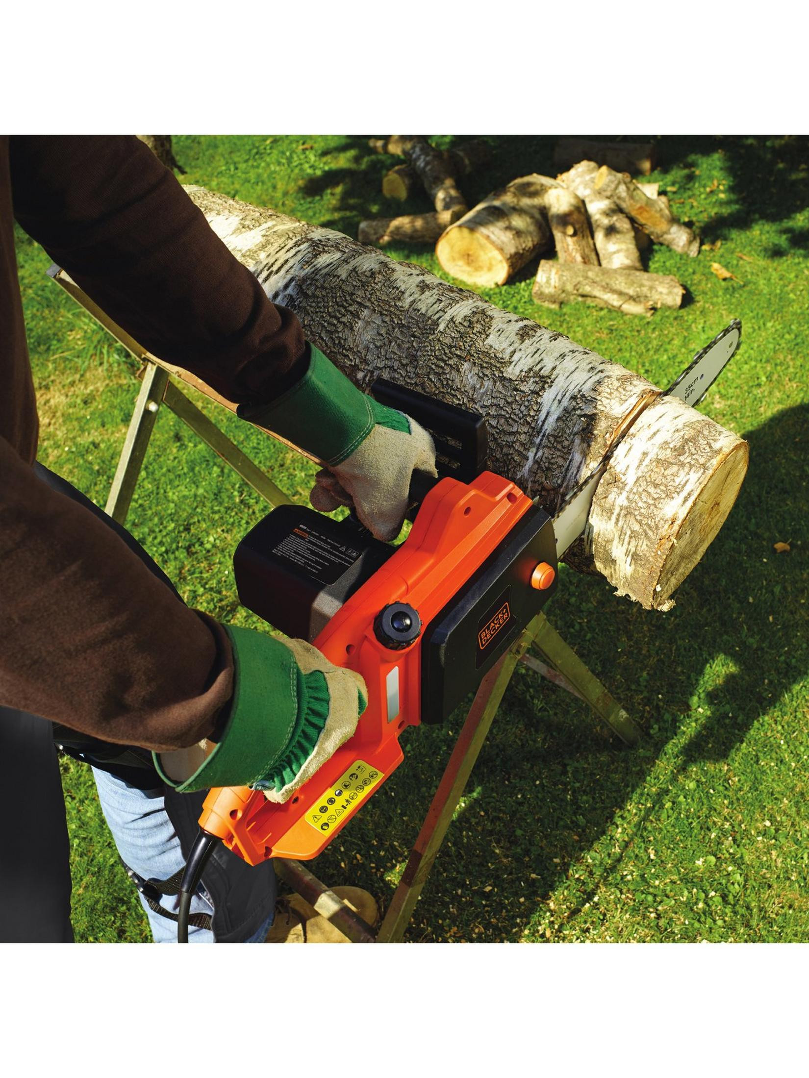 - The BLACK+DECKER 1800W Corded Chainsaw offers up to 35 cm cut capacity.