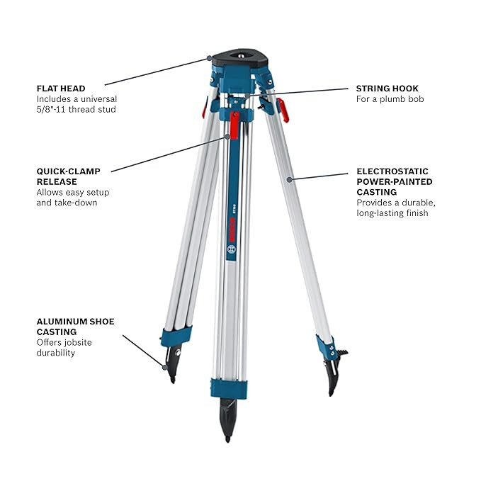 - 5/8-inch-11 thread-stud, flat head tripod - universal with string hook for plumb bob