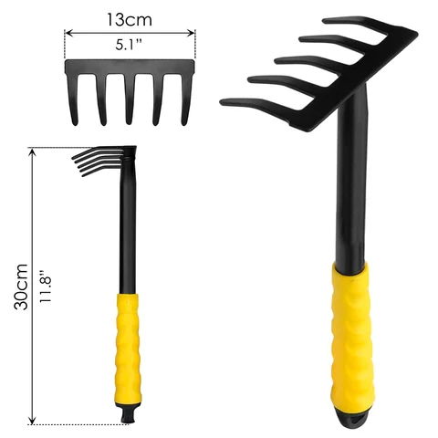 - Five-tooth rake for loosening the soil, flating the soil and removing the root