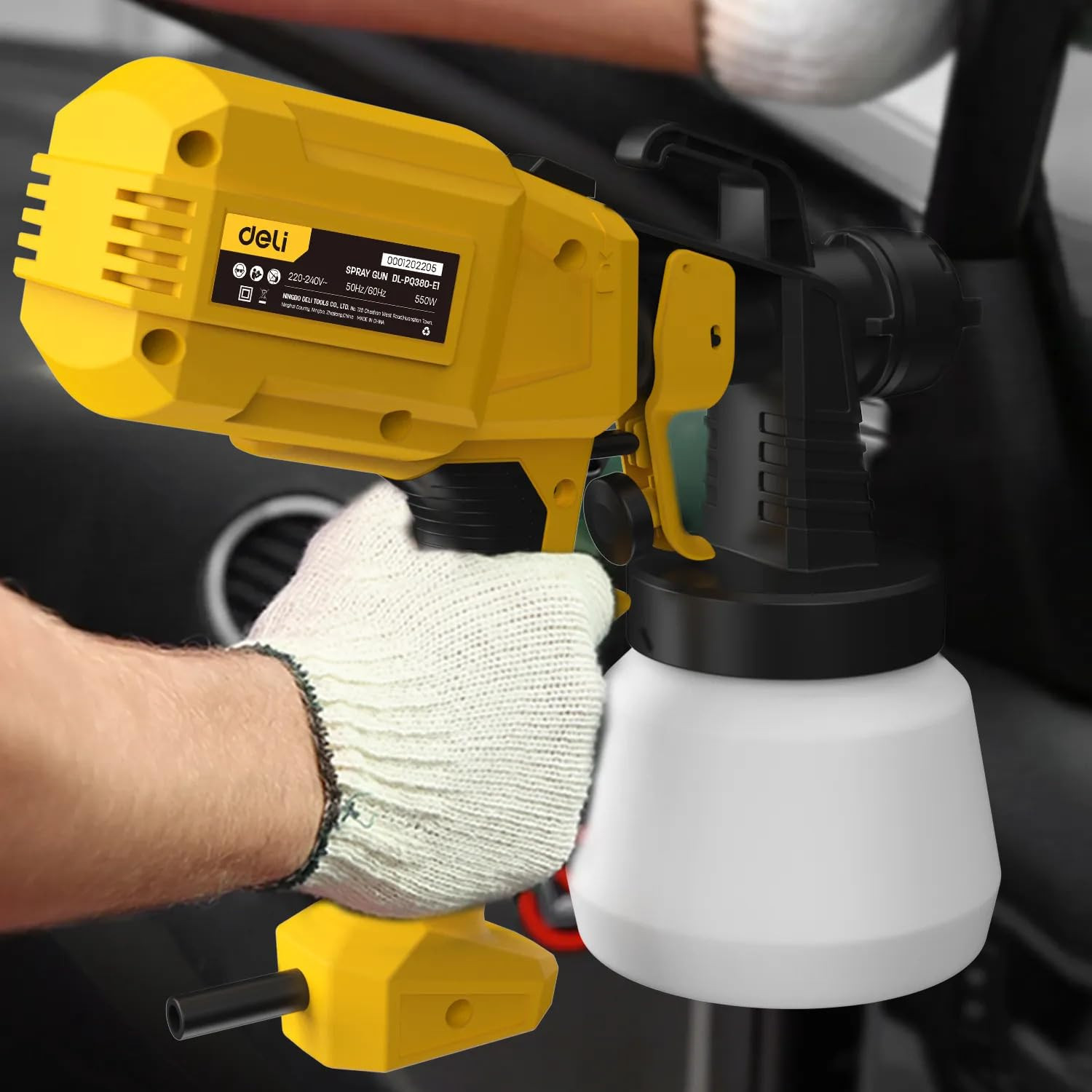 - Versatile Application: This Electric Spray Gun, with an 800ml container, offers three spray pattern options. It's equipped with a robust copper wire motor, delivering up to 550W of power and a maximum flow rate of 380ml per minute. This powerful spray gun is suitable for a wide range of tasks, including wall painting, furniture spraying, and even garden watering.