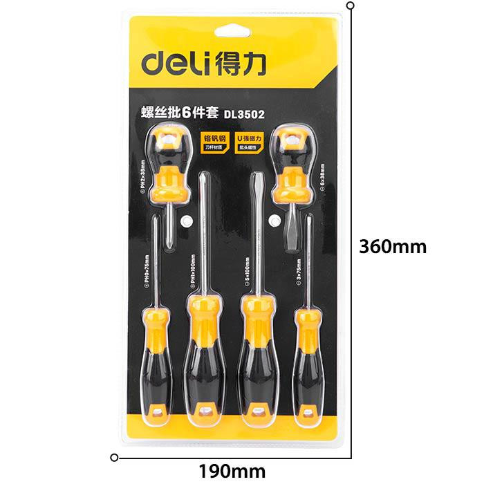 - Package Content: 1 x Deli Screwdriver Set 6 Pcs DL3502