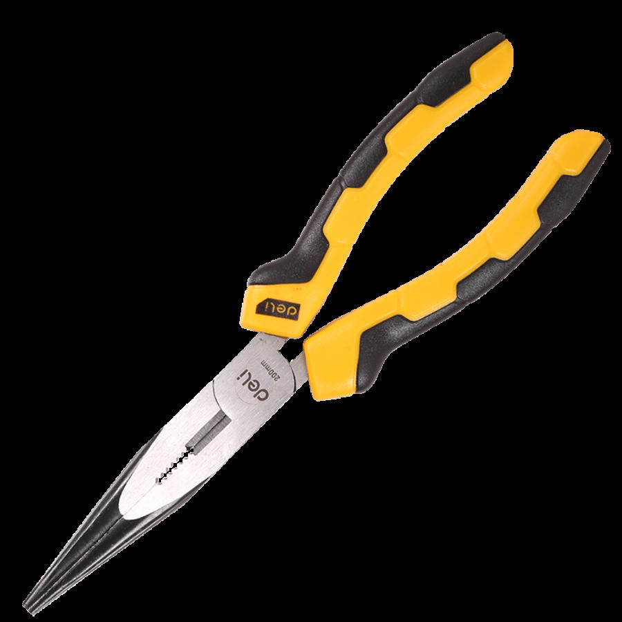 - Long Nose Pliers Deli Tools EDL2108 Deli brand professional universal pliers in 8 "size and yellow color.