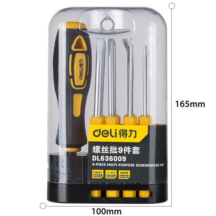 - Package Contents: 1 x Deli Screw Driver Set 9 Ways DL636009