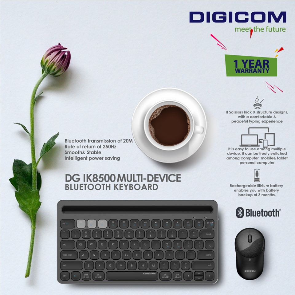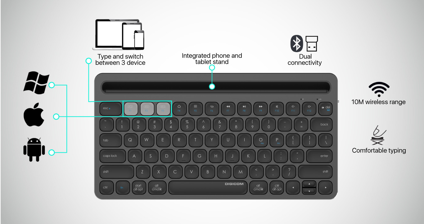 DIGICOM Multi-Device Bluetooth Keyboard DG-IK8500