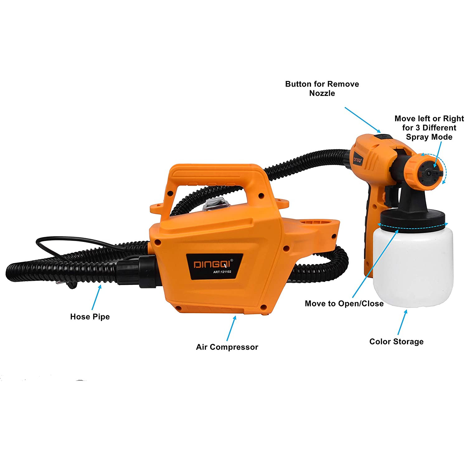 Voltage: 220-240W Rated Power input: 800W Container Capacity: 800ml Viscosity: 50din/sec Frequency: 50Hz Cable Length: 2.0m Nozzle: 1.8/2.6mm Flow: 700ml/min, The length of hose pipe is 185 cm, Application: Gardening, Furniture Paint, Spray Wall
