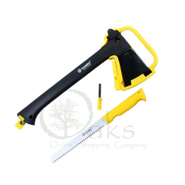 - The saw is stored in an empty handle of the axe and gets easily from it when it is needed.