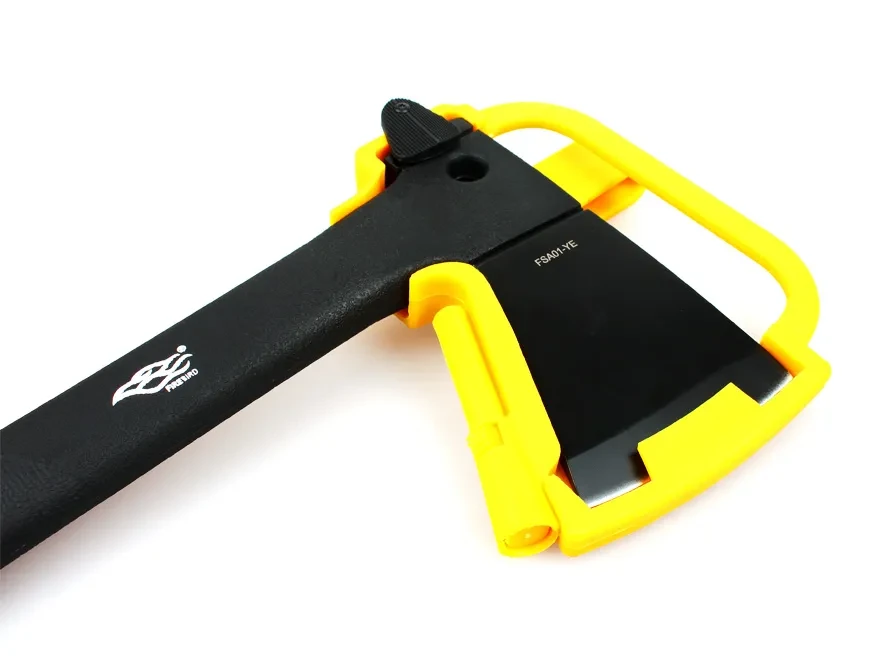- The case is made of well noticeable yellow plastic and completely covers an edge when the axe isn't used. There is a special large handle on the case, so that it'll be comfortable to carry the set.