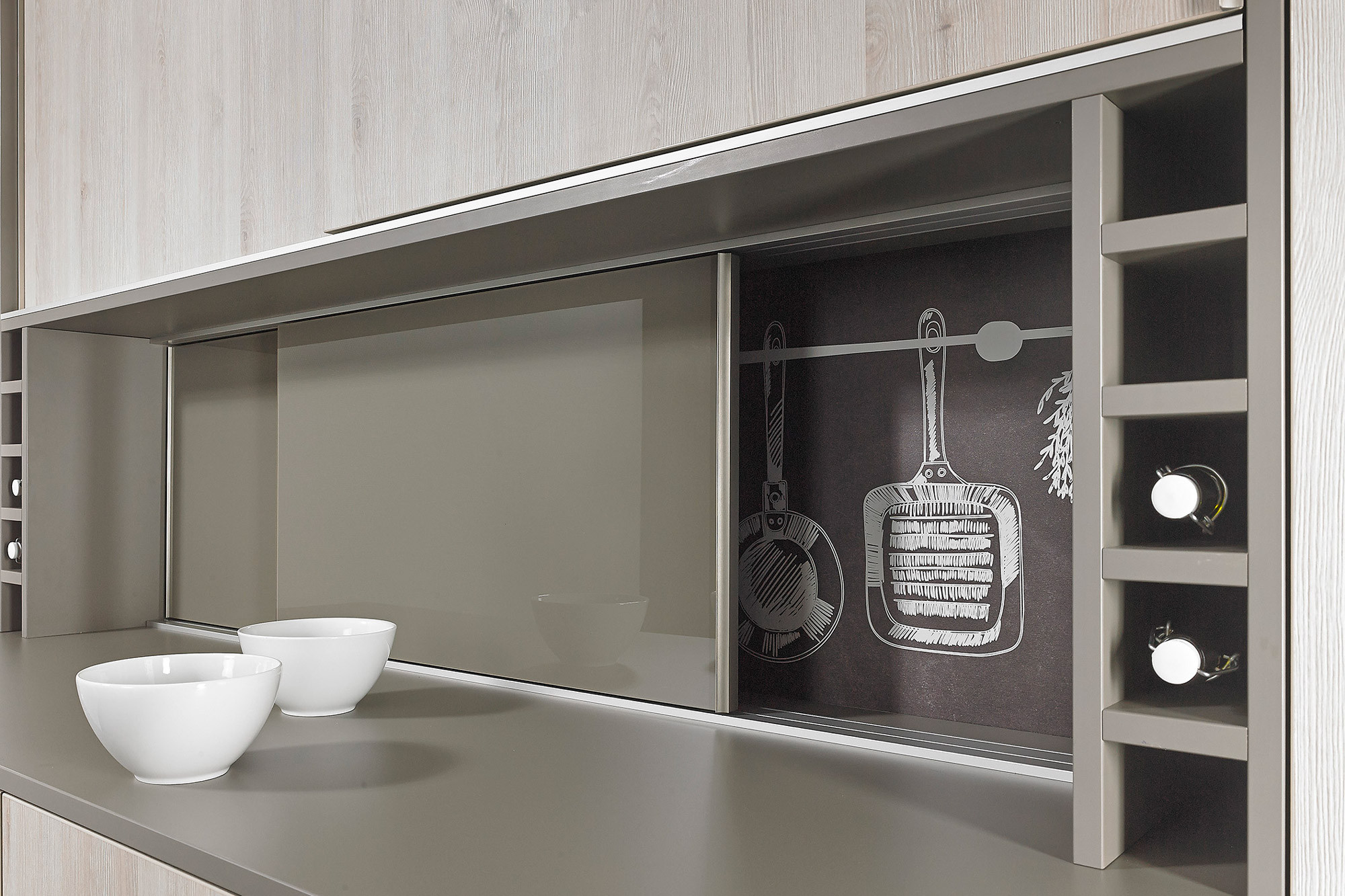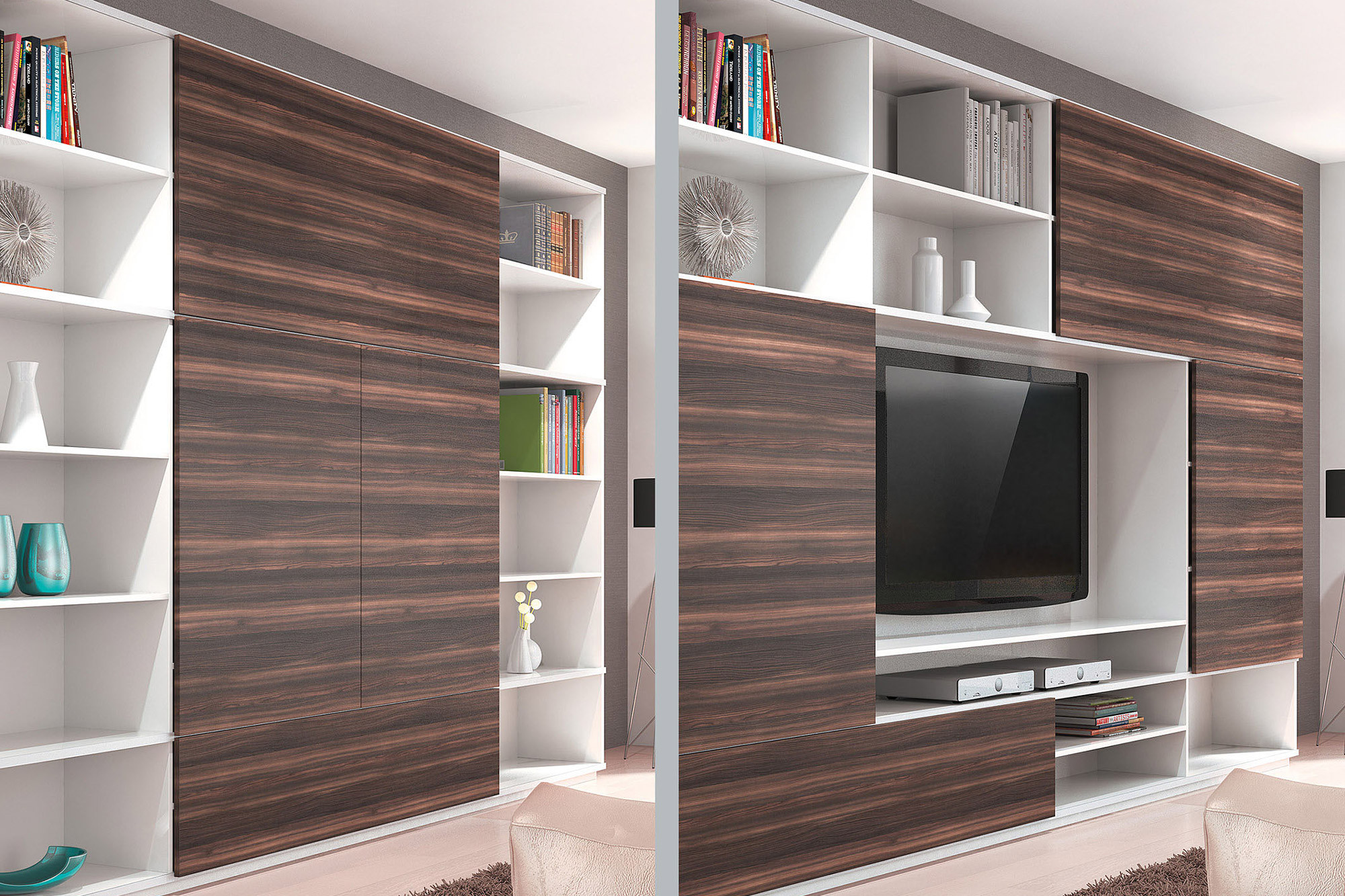 - The 1-track, close fitting sliding door system functions as a practical design element on living-room wall units, shelf systems, kitchen wall units and bathroom furniture.