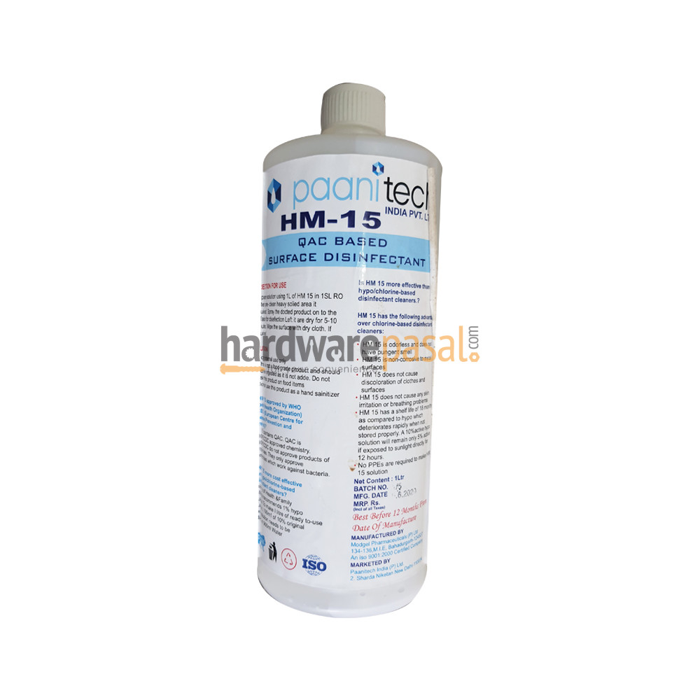 - 1 liter HM 15 is enough for disinfection of an area of 5000 square feet.