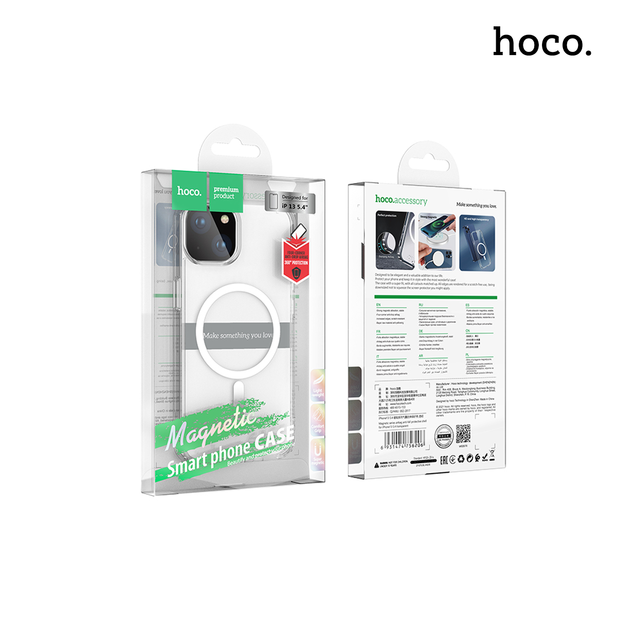 HOCO 5.4″ Transparent Magnetic Series Airbag Anti-Fall Protective Shell for iPhone 13 Mini