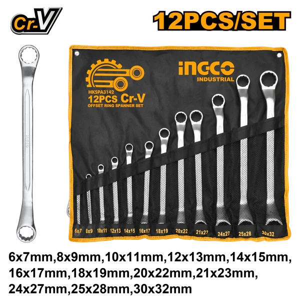 Ingco 12Pcs Offset ring spanner set HKSPA3142