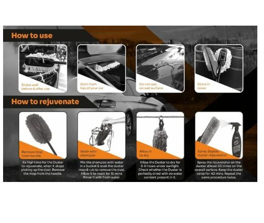 - Shake the Duster Rejuvenator before use and ensure the sprayer nozzle is in the spray mode and not in stream/off mode.
