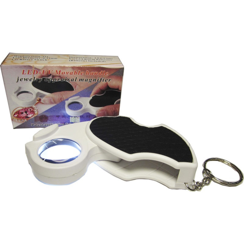 - Magnifying glass-jewelry keychain: Led-Uv Movable handle, two backlights: white, blue, turn on automatically.