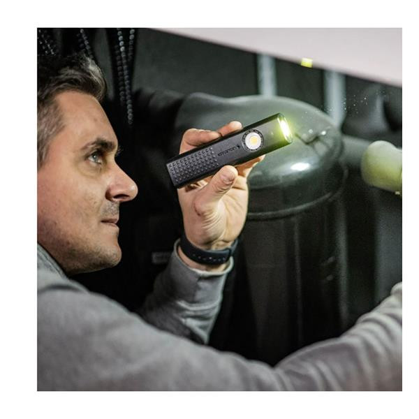 The Ledlenser W5R WORK is the luminous powerhouse in trade professionals’ toolboxes. The superior Ledlenser light beam ensures precise illumination even of larger work areas – either broadly via flood light or precisely via spot LED in the light head. Thanks to the integrated magnet and hook in the stand, the inspection lamp can be flexibly positioned and aligned at any time. The powerful battery can be charged quickly and easily via USB-C and can be replaced if necessary. Other clever features include a metal screw for tightening the foldable stand, a nubbed surface for a strong grip and a handy transport lock.
