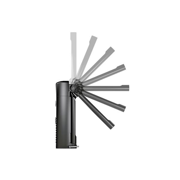 - Flexible mounting via stand, magnet, and fold-out metal hook
