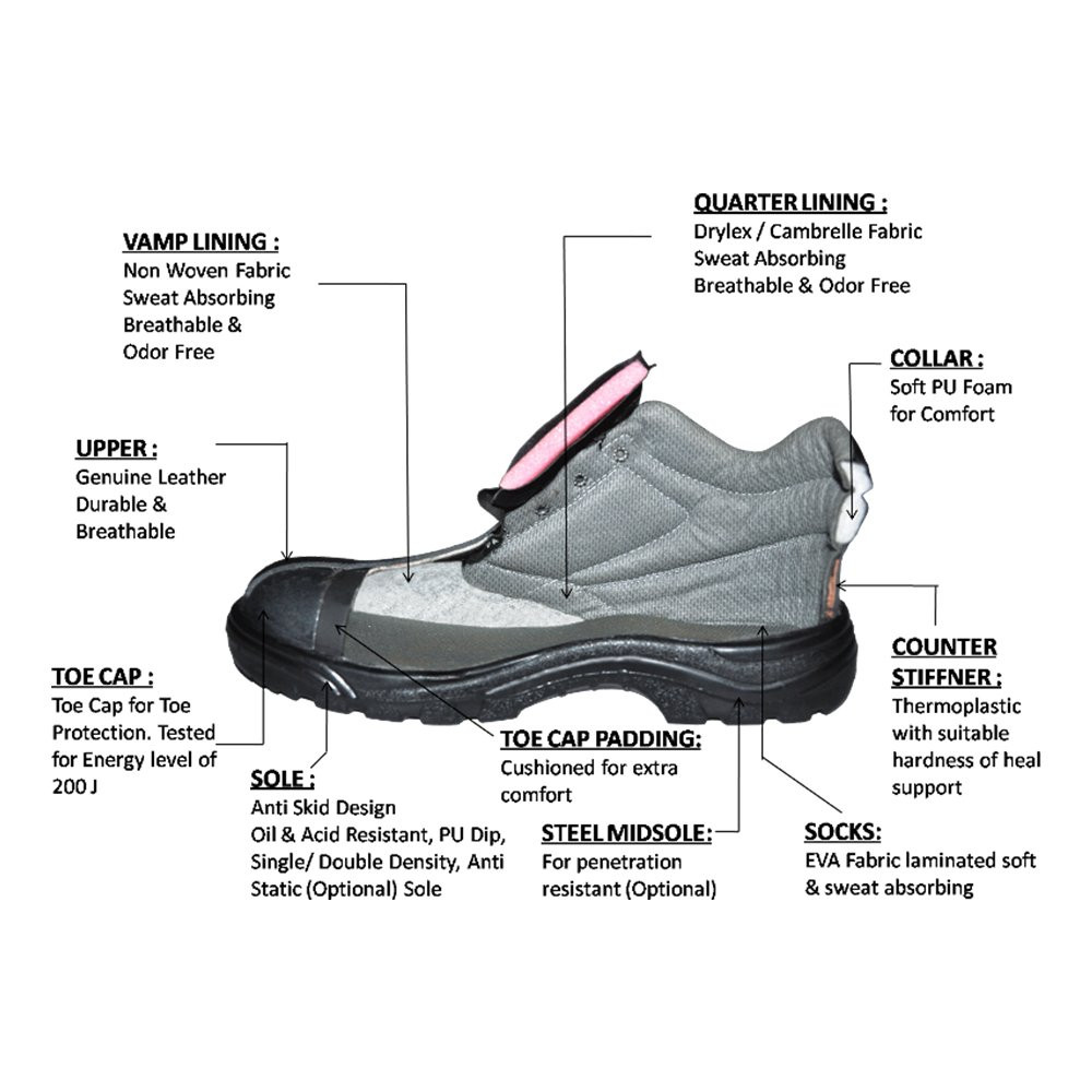 - Specifically designed as anti skid which makes them a perfect safety device for feet in workplaces like power plants, cement/construction site, oil and automobile factory