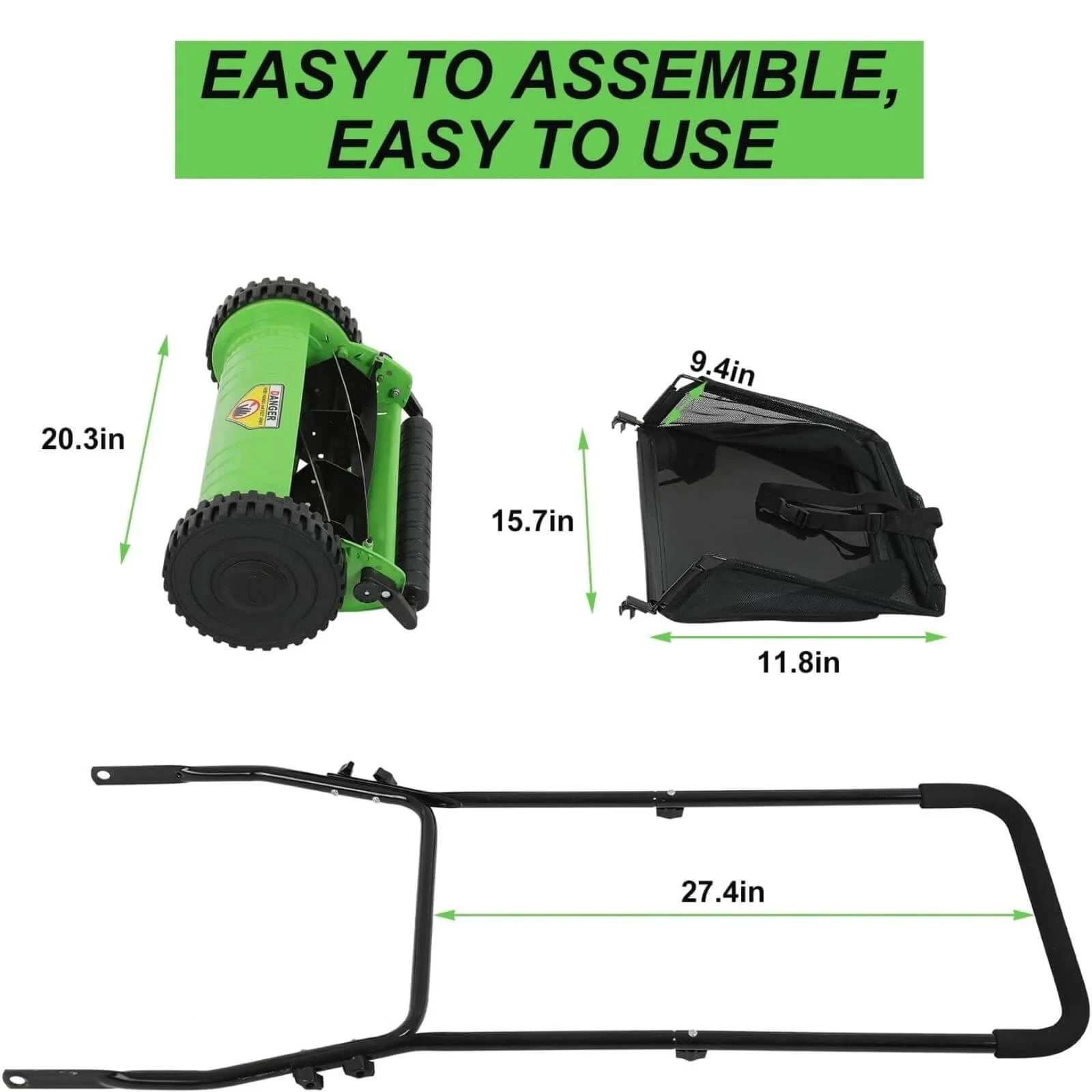 - The hand-push mower is equipped with a removable grass collector. This collection bag will prevent grass from littering your lawn.