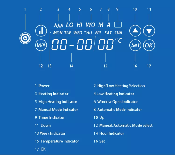 - High (1000W) /Low (500W) thermostat setting allows energy and electricity savings.