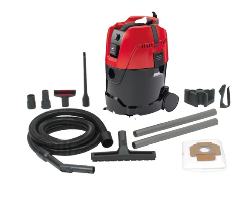 - Standard equipment 3.5 m hose with floor cleaning kit, 2 x powertool connection adaptor, PET filter, 1 x disposable bag, 1 x fleece bag, 1 x crevice nozzle
