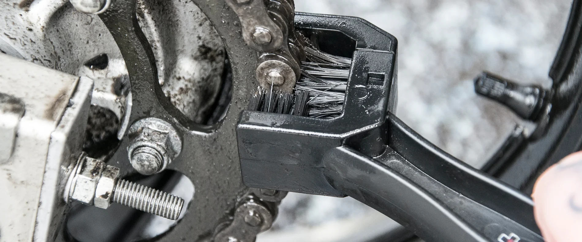 - Long brush end is ideal and agitating grime and dirt off front and rear sprockets.