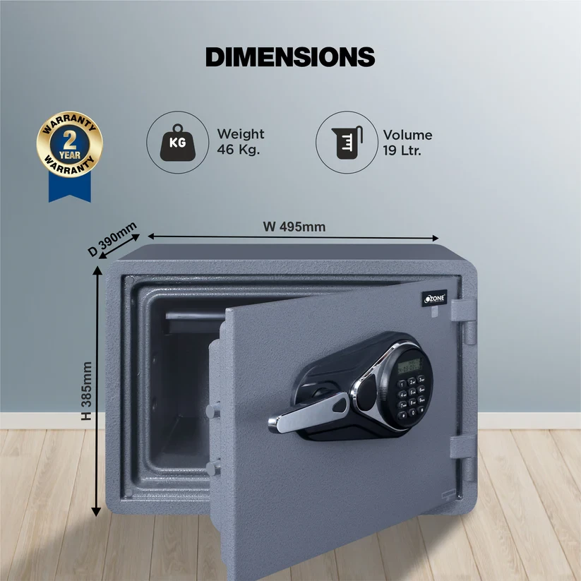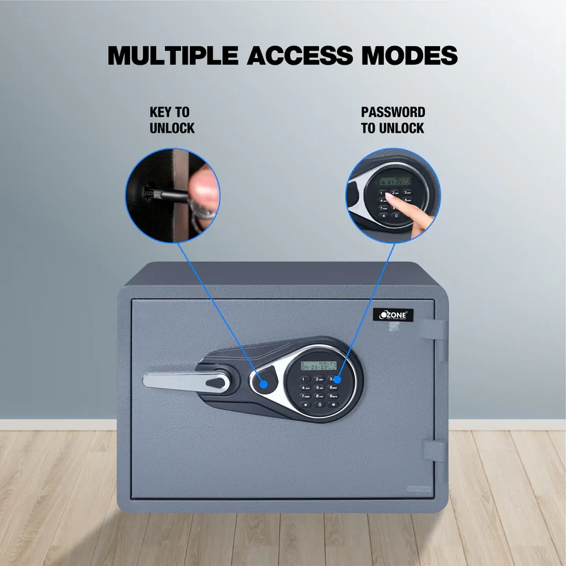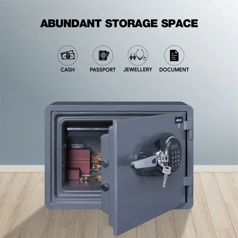 - The safe features a digital keypad with an LCD screen, ensuring convenient access and a premium finish.