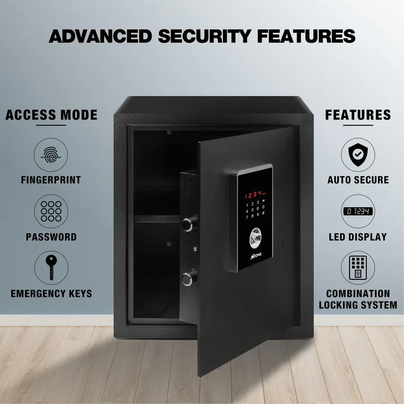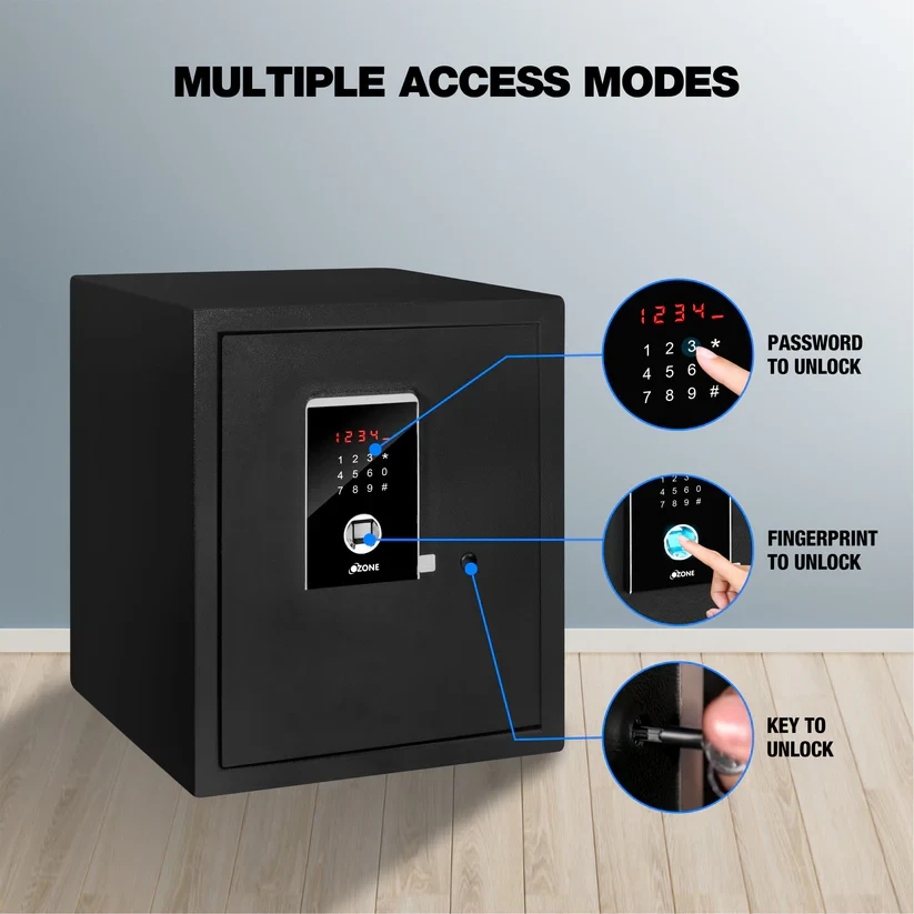 To deter criminal activity, alarm systems are set up for the smooth functioning of the safe. More than three tries of the wrong fingerprint for access will set off the alarm system and alert the owners of the safe - Combination Locking System