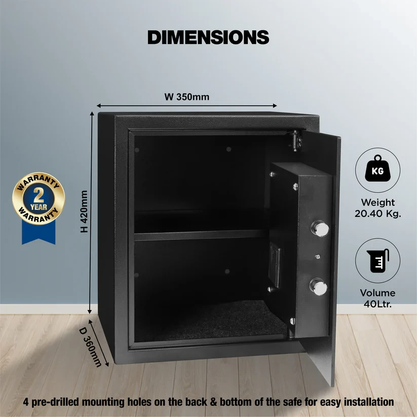 The safe locker is provided with two keys to open the locker in a situation of emergency such as forgetting your password - Code-Hiding Function