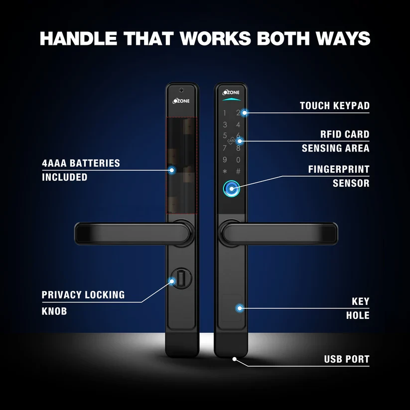 - Emergency Battery Backup - If the battery is completely drained, the lock can be connected to a power bank through the USB port to regain access for a while.