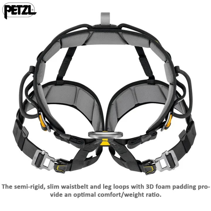 - Lightweight and comfortable :- Semi-rigid, slim waistbelt and leg loops with 3D foam padding, providing optimal comfort/weight ratio and reduced bulk- Textile side attachment points, for occasional use, limit bulk and weight