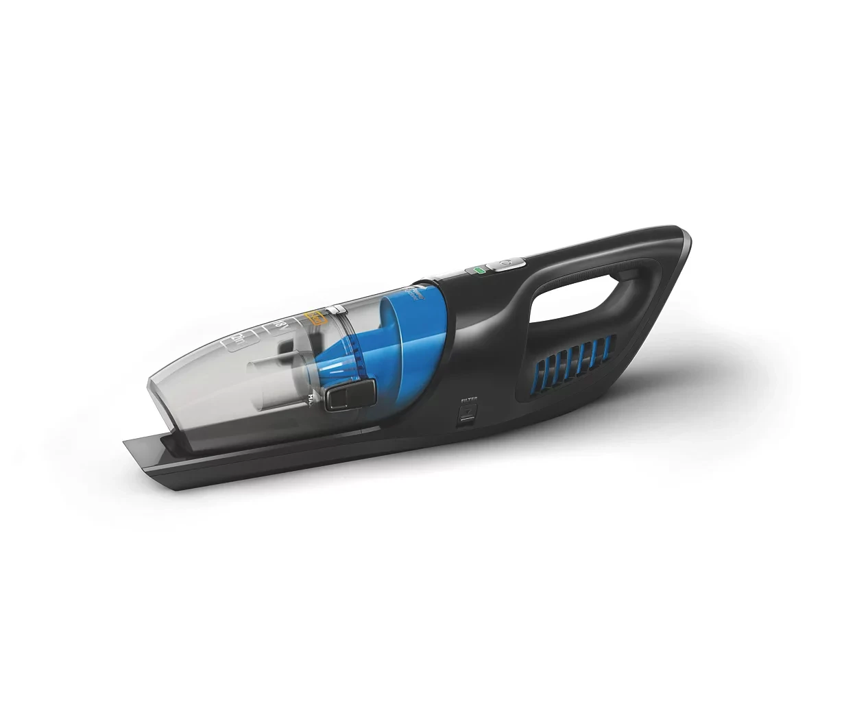 The dust container is perfectly designed to dispose dust directly into the dust bin. Thanks to its One-step easy emptying system you can simply empty the dust bucket without touching the dirt, avoiding complicated processes. Easy to empty and hygienic to clean. - 3 layer filter German technology captures micro particles*