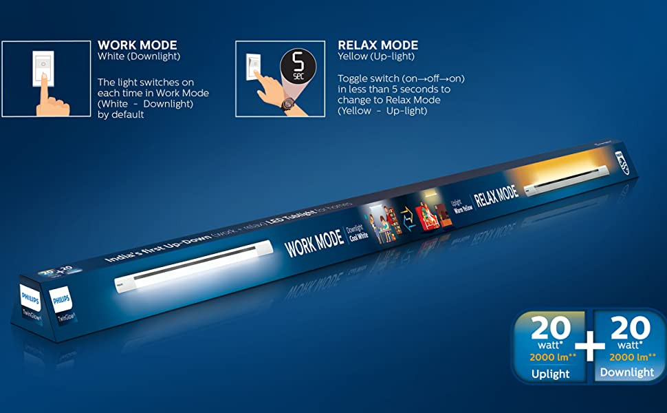 Philips 20W+20W Twin Glow (CW+WW) Batten