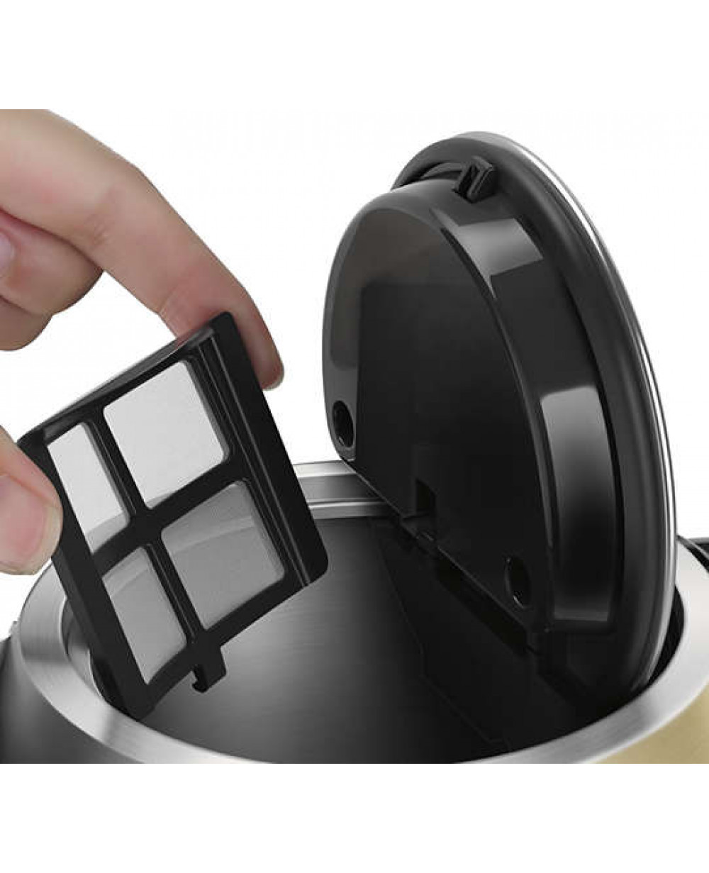 - The stainless steel concealed element ensures fast boiling and easy cleaning.