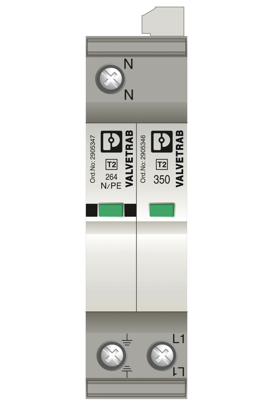 - Type 2 surge arrester 2905333 - VAL-SEC-T2-1S-350-FM from Phoenix Contact for 1-phase power supply networks with separate N and PE (3-conductor system: L1, N, PE) is the perfect protection against lightning strikes and overvoltages.