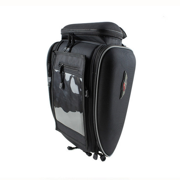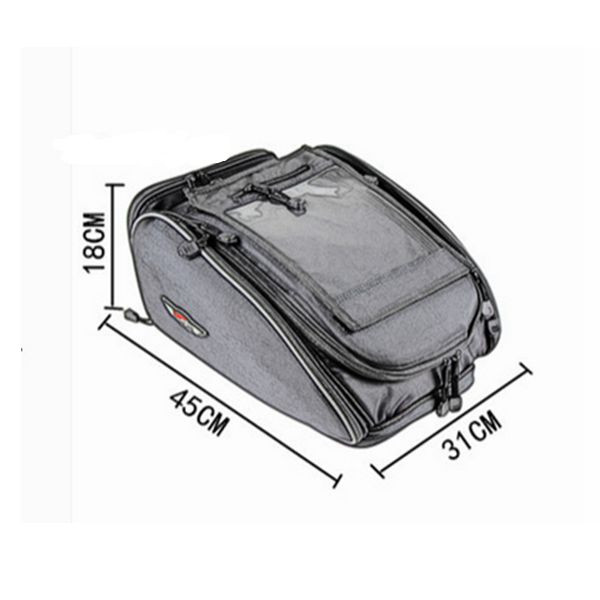 This tank bag is scratch resistant; non-slip base prevents slipping and protects the surface of your tank and at back seat. Fabricated from harsh weather resistant polyester, waterproof zippers, this bag comes with a rain cover for riding in any weather and a shoulder belt. It can be used for daily purpose.