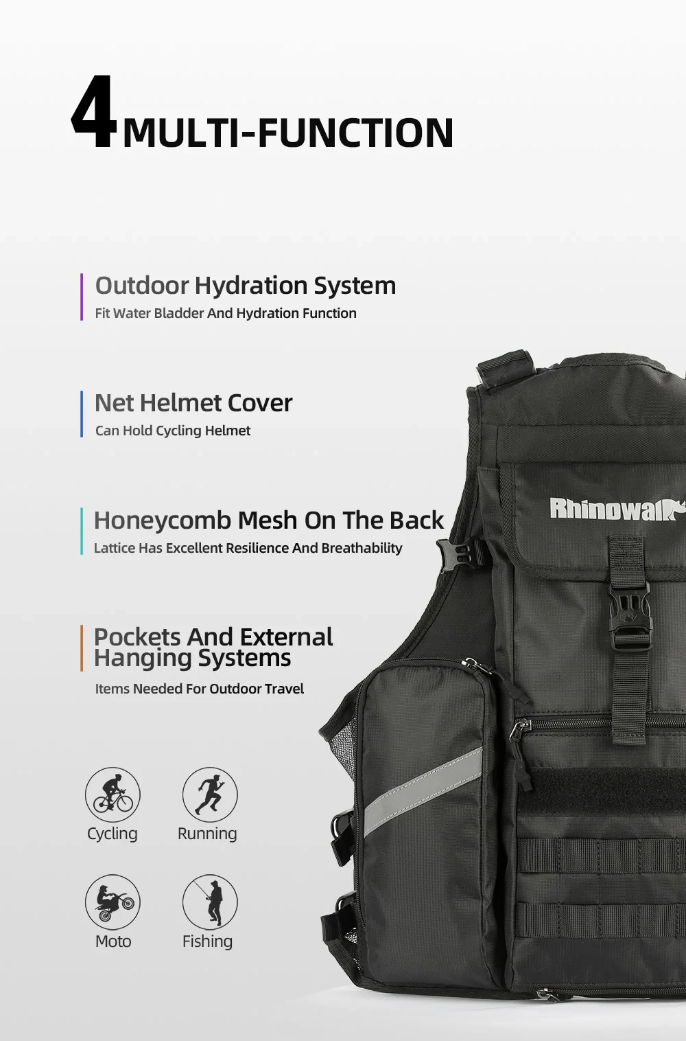 - 【Multi-pockets】9 zipper pockets and outer hanging system, meet the needs of outdoor travel. Outdoor water supply system, can hold 3L water bladder. Back hidden zipper pocket with elastic mesh helmet cover can store riding helmet.