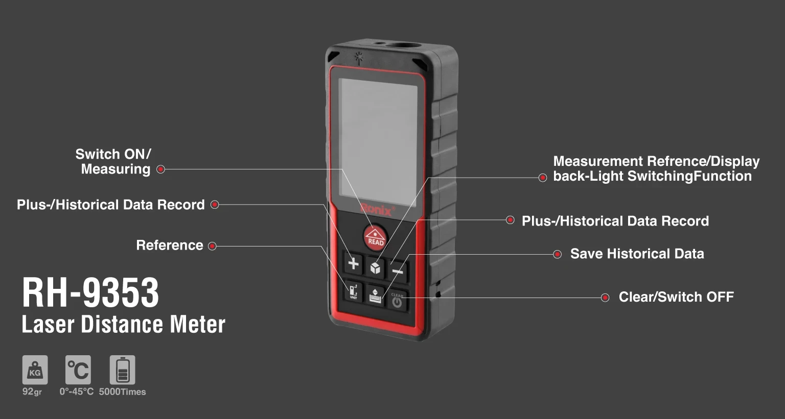 - IP54 waterproof level and dust-proof function protect the laser distance measure to the